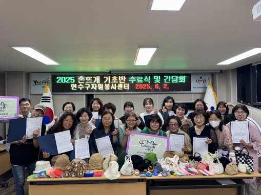[무한뉴스=정승훈 기자] 연수구자원봉사센터는 지난 6월 2일, 손뜨개 역량을 갖춘 전문봉사단 구성을 위한 양성(기초)교육 수료식 및 간담회를 열었다. 이번 행사는 12회기 동안 진행된 '손뜨개 기초교육과정'을 마친 수료자들을 대상으로 진행됐다.