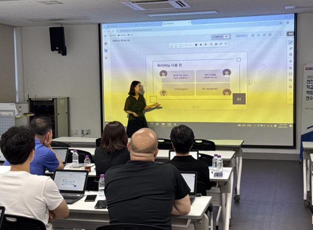 이번 연수는 AI 기반 교수·학습 플랫폼 ‘하이러닝(Hi-Learning)’의 교육적 활용 가능성을 관리자들이 직접 체험할 수 있도록 실습 중심으로 구성됐으며, 수업 설계 사례와 플랫폼 기능을 실시간으로 탐색하는 연수로 운영됐다.