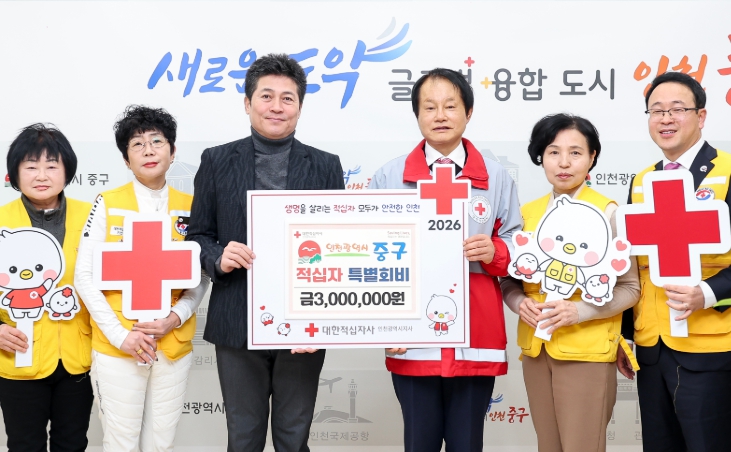 [무한뉴스=정승훈 기자] 인천시 중구는 병오년 새해를 맞이해 대한적십자사 인천지사에 ‘2026년도 적십자 특별회비’ 300만 원을 전달하며 나눔과 상생의 가치를 실천했다고 7일 밝혔다.