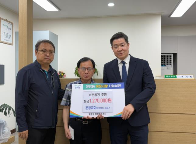 유재경 동장은“지역 소외계층을 위해 따뜻한 손길을 전해주신 문창교회와 관계자 여러분께 깊이 감사드리며, 기탁받은 성금은 어려운 이웃들을 위해 소중하게 사용하겠다”라고 말했다.
