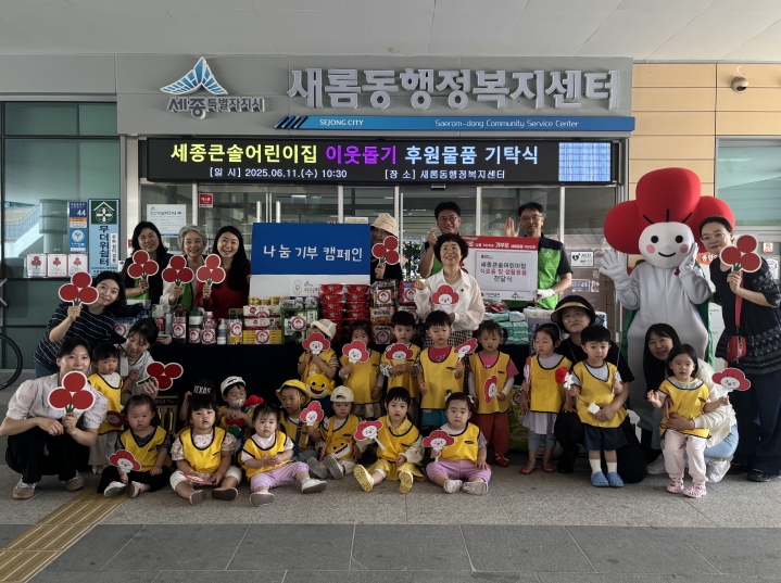김지원 새롬동장은 “아이들과 함께한 이번 기부는 나눔의 의미를 더욱 특별하게 한다”며 “따뜻한 마음이 담긴 물품은 꼭 필요한 이웃에게 정성껏 전달하겠다”고 밝혔다.