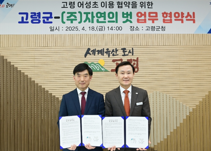 [무한뉴스=최진수 기자] 고령군은 지난 4월 18일 고령군청 가야금방에서 ㈜자연의벗과 고령 어성초를 활용한 화장품 개발을 위한 업무협약을 체결했다.