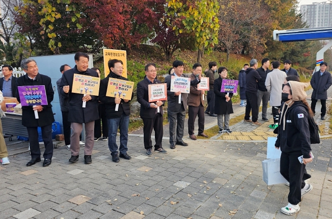 [무한뉴스=정민정 기자] 진천군의회 의원 일동은 13일, 2026학년도 대학수학능력시험이 치러지는 진천고등학교와 서전고등학교를 찾아 수험생들의 용기를 북돋웠다.