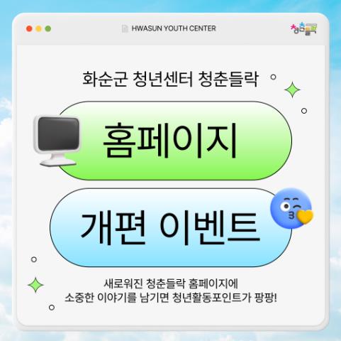 [무한뉴스=정민정 기자] 화순군은 청년 소통 플랫폼인 ‘청춘들락’ 홈페이지를 전면 개편하고, 이를 기념해 청년 참여 이벤트를 오는 8월 13일부터 24일까지 진행한다고 밝혔다.