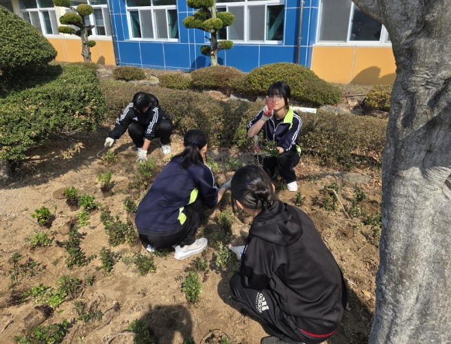 실제 활동은 제공된 재료를 활용해 교사와 학생이 자율적으로 학교 내 화단과 텃밭을 조성하는 방식으로 진행됐다.