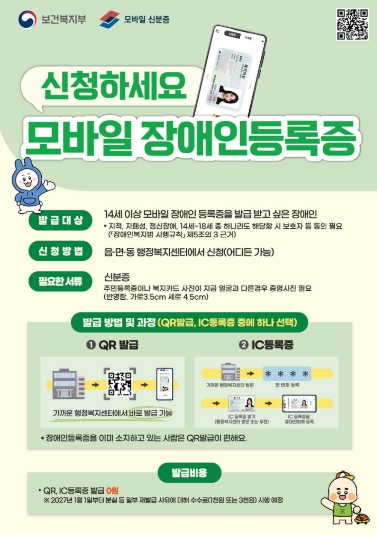 [무한뉴스=정민정 기자] 남원시는 오는 2026년 1월 22일부터 기존 실물 장애인등록증과 함께 모바일 장애인등록증 발급 서비스가 전면 시행된다고 밝혔다.