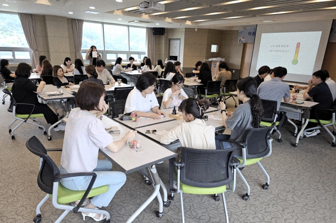 이날 교육은 아이들을 돌보는 과정에서 발생하는 스트레스와 감정노동 등으로 인한 정서적 소진을 줄이고 회복의 기회를 제공한다는 취지에서 진행된 것으로, 전문 강사와 함께하는 아로마테라피가 진행돼 호응을 얻었다.