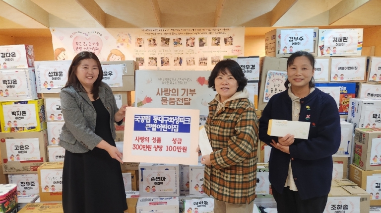 [무한뉴스=최진수 기자] 국공립 동대구화성파크큰별 어린이집(원장 김유미)은 지난 11일, 지역사회 내 도움이 필요한 아동을 위해 후원금 100만원과 300만원 상당의 후원 물품을 동구청을 통해 관내 아동복지시설 2개소에 전달했다. 성금과 후원 물품은 어린이집의 교육활동을 통해 마련됐다.
