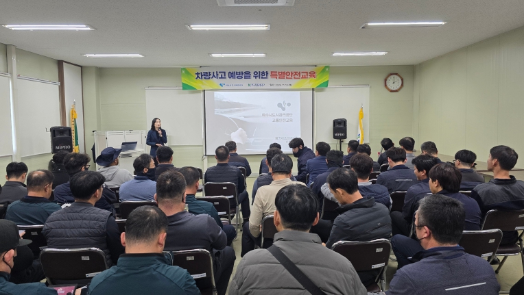 [무한뉴스=정민정 기자] 여수시도시관리공단(이사장 송병구)은 지난 13일 청소차량 운전원 60명을 대상으로 차량사고 예방 특별안전보건교육을 실시했으며, 직원과 가족이 함께 참여하는 “가족참여형 안전보건 공모전”을 진행하여 조직 전반의 안전문화 확산에 나서고 있다고 17일 밝혔다.