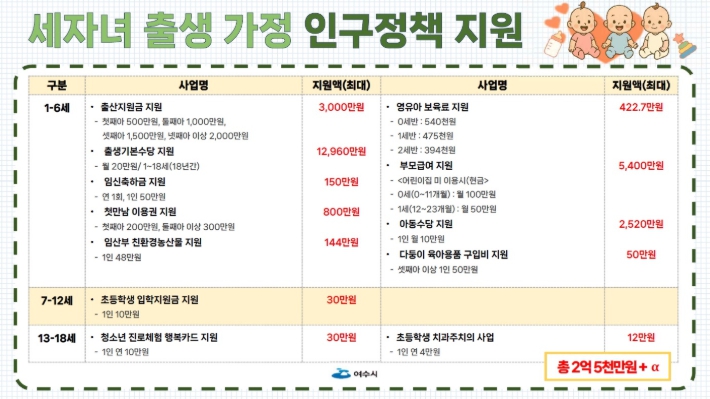 | ▲ 여수시, 세 자녀 출산 가정에 총 2억 5천만 원 지원 |
