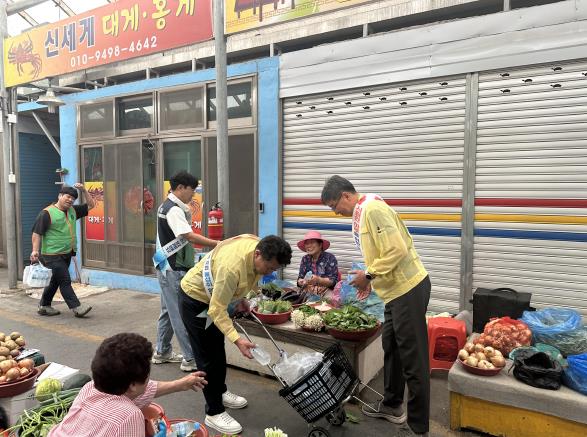 이번 행사는 안전건설국장 및 안전재난과 주관으로, 남원시자율방재단 30명이 함께 참여해 무더위 속 공설시장을 찾은 시민과 상인을 대상으로 500ml 얼음생수 3,000병을 시민들에게 제공하며, 폭염 시 행동요령 및 온열질환 예방법을 안내했다.