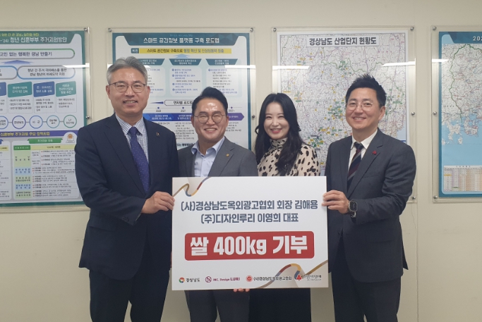 경상남도옥외광고협회와 디자인루리에서 제14회 경상남도 옥외광고대상전에서 접수한 축하 쌀 화환 400kg(10kg, 40포)을, 이 대회에서 대상을 받은 디자인루리 이영희 대표가 상금 100만 원을 각각 공동모금회에 기탁했다. 기탁된 성금과 물품은 도내 어려운 이웃을 위해 사용될 예정이다.