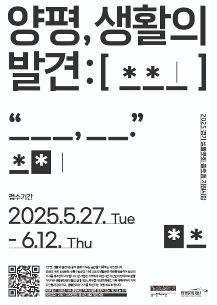 [무한뉴스=정승훈 기자] 양평문화재단은 경기문화재단의 지원 사업인 ‘2025 경기 생활문화 플랫폼’ 공모사업에 최종 선정되어,‘양평, 생활의 발견’ 프로젝트를 본격 추진한다고 밝혔다.