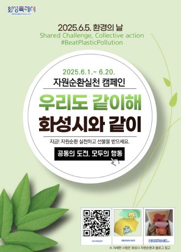 [무한뉴스=정승훈 기자] 화성특례시가 6월 5일 환경의 날을 맞아 오는 20일까지 시민과 함께하는 자원순환실천 캠페인 ‘우리도 같이해 화성시와 같이’를 진행한다.