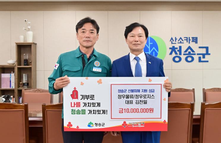 ▲ 청송군, 산불 피해 복구에 온정의 손길 이어져-청우물류, 청우로지스 대표 김천일. |