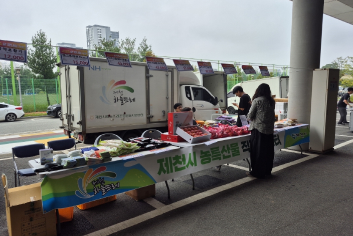 [무한뉴스=정민정 기자] 제천시는 지난 9월 30일 충북 오송단지에서 열린 식품의약품안전처 주관 직거래장터에 지역 농산물 판매업소 ‘하늘뜨레’와 함께 참여해, 오송단지 내 6개 입주기관 직원과 주민 등 2,000여 명을 대상으로 지역 특산품을 판매했다.