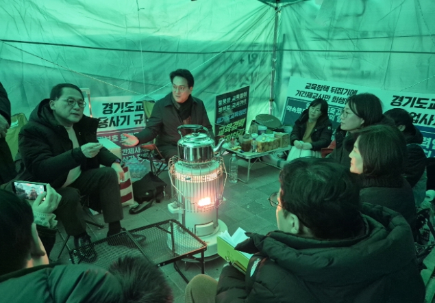 [무한뉴스=양현명 기자] 경기도의회 교육기획위원회 안광률 위원장(더불어민주당, 시흥1)은 27일 오후, 경기도교육청 1층 외부에 설치된 ‘기간제 사서교사 경력 인정 문제 해결 촉구 천막 농성장’을 방문해 교사들의 목소리를 직접 청취하고, 경력 인정 문제에 대한 해법을 논의했다.