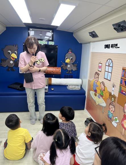 | ▲ 오산시보건소, 아모레퍼시픽 어린이집 아동 대상 ‘금연버스 흡연예방교육’ 실시 |