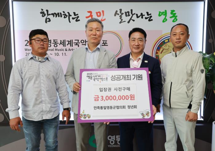 [무한뉴스=정민정 기자] 민족통일 영동군청년회는 ‘2025영동세계국악엑스포’의 성공개최를 기원하며 28일 영동군청에서 입장권 구매를 약정했다.