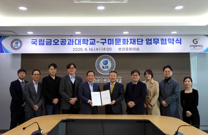 국립금오공대 본관 중회의실에서 열린 협약식에는 이한석 (재)구미문화재단 대표이사와 곽호상 국립금오공대 총장을 비롯해 양 기관 관계자 10여 명이 참석했다.