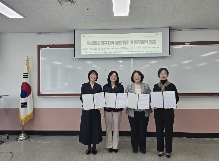 이번 협약식에는 군위군청소년상담복지센터를 비롯해 대구아동보호전문기관, 동구청소년상담복지센터, 서구청소년상담복지센터 등 4개 기관 관계자 10명이 참석했다.