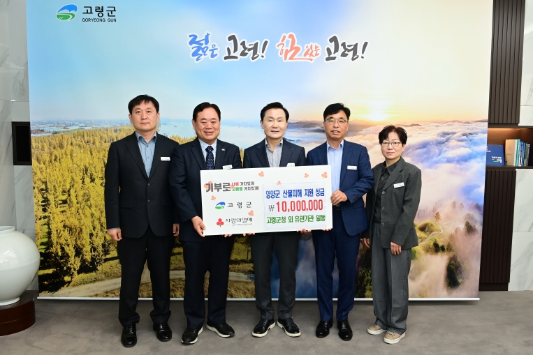 [무한뉴스=최진수 기자] 고령군은 대형 산불 피해를 입은 영양군의 신속한 복구 지원을 돕고자 고령군청 직원들의 따뜻한 마음과 관내 기관·단체 회원들의 위로와 응원을 담은 성금 1,000만원을 전달했다.