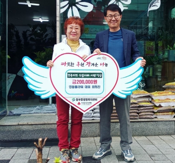 ▲ 청솔아파트 경로당, 영동플라워 산불피해 성금 기탁식 |
