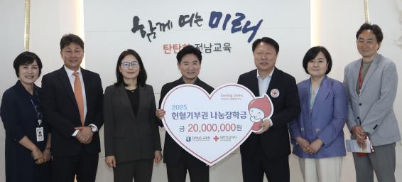 [무한뉴스=정민정 기자] 전라남도교육청과 대한적십자사 광주전남혈액원이 지난 19일‘2025년 헌혈기부권 나눔장학금 전달식’을 열고, 도내 고등학생 20명에게 총 2,000만 원의 장학금을 전달했다.
