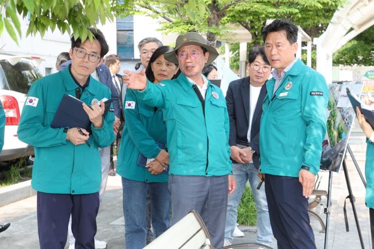 마지막 방문지는 도시바람길숲(보행자전용도로) 조성사업 현장으로, 지난 2월에 이어 재차 방문해 세부 점검이 이뤄졌다.