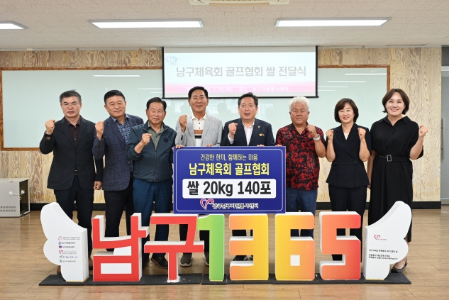 광주남구체육회골프협회(회장 양승남)는 10일 광주남구자원봉사센터에 20kg 쌀 120포를 전달했다. 이번 기부는 회원들이 자발적으로 모은 성금으로 마련됐으며, 2년째 이어지고 있다.