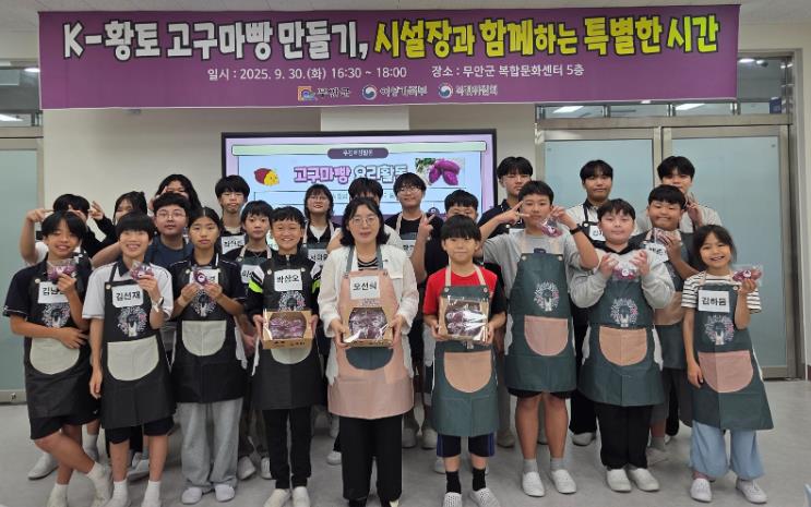 [무한뉴스=정민정 기자] 전남 무안군 청소년방과후아카데미는 지난 9월 30일 청소년 20여 명과 시설장이 함께하는‘K-황토고구마 빵 만들기’프로그램을 성황리에 진행했다.