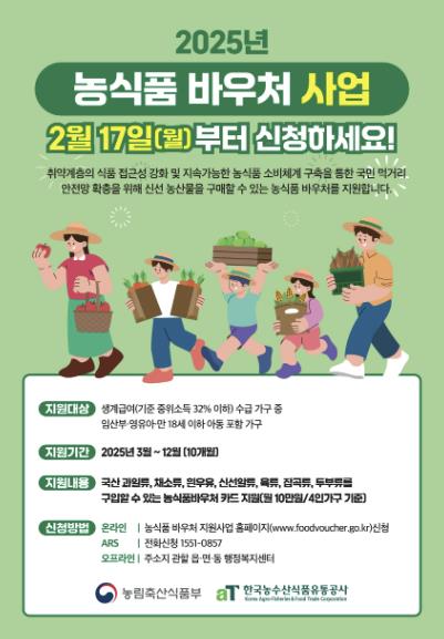 시 관계자는 “아직 신청하지 않은 대상자는 반드시 기한 내에 신청해 신선하고 질 좋은 농산물을 구매할 기회를 놓치지 않길 바란다”라며 “기존 이용자들은 바우처 포인트가 매달 소멸되는 만큼 적극적으로 사용해 혜택을 누리길 바란다”라고 말했다.