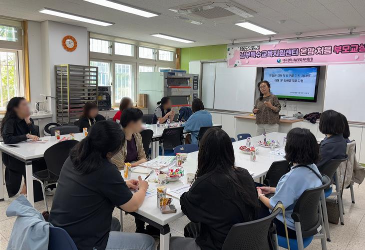 [무한뉴스=최진수 기자] 대구남부교육지원청은 4월 23일 대구죽전초등학교 내 남부특수교육지원센터에서 특수교육 대상 학생 학부모 17명을 대상으로 ‘온맘 처음 부모교실’을 실시했다.