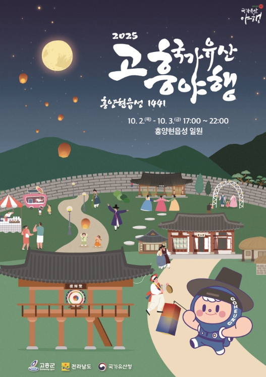 [무한뉴스=정민정 기자] 고흥군은 오는 10월 2일부터 3일까지 이틀간 고흥읍 존심당 역사문화공원(구 군청)에서 '2025년 고흥 국가유산 야행 ‘흥양현읍성 1441’'을 개최한다고 밝혔다.
