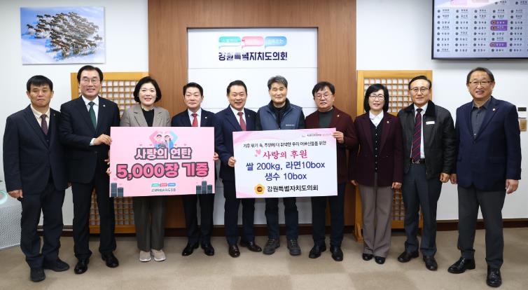 [무한뉴스=정민정 기자] 강원특별자치도의회는11월27일 어려운 이웃들이 따뜻한 겨울을 보낼 수 있도록 지원하기 위해‘2025년 사랑의 연탄기부 증정식’을 도의회에서 개최 했다.