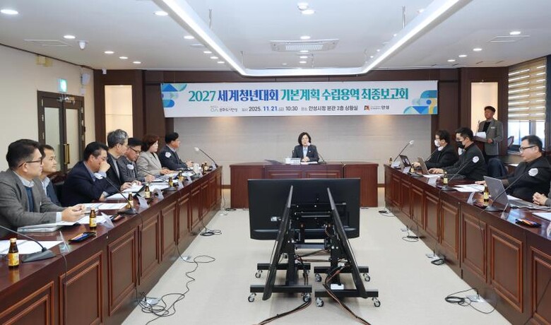 [무한뉴스=정충근 기자] 안성시가 21일 안성시청에서 ‘2027 세계청년대회 기본계획 수립 용역 최종보고회’를 개최하고 본격적인 세부 추진계획 마련에 박차를 가했다.