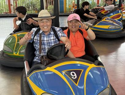 | ▲ 오월드에서 범퍼카를 타면서 즐거워 하는 주간보호센터 참여자 |