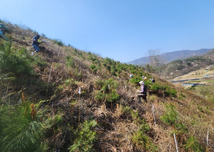 이번 사업은 기후위기 대응과 탄소중립 기여를 위해 산림청 기준에 따라 공익적 가치와 경제성이 혼합된 중목수종 중심으로 경제림(목재생산, 특용자원), 경관림(큰나무공익) 등을 조성했다.