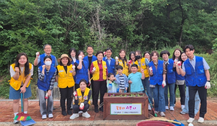 이번 행사는 교육지원청 청렴 영동 동호회 회원 14명과 지역 봉사단체가 공동으로 기획한 것으로 학생들이 등하교 시 매일 지나게 되는 등굣길에 다양한 꽃을 심어 아름다운 경관을 조성했다.