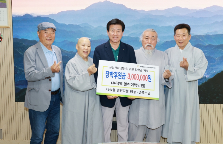 혜능스님은 “지역 학생들이 꿈을 키우며 학업에 전념할 수 있기를 바라는 마음에서 기탁을 이어가고 있다”며 “앞으로도 금산교육사랑장학재단이 지역 교육 발전의 초석이 되길 기원한다”고 전했다.