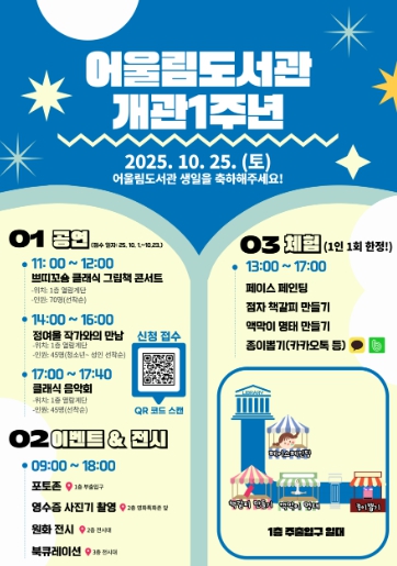[무한뉴스=정민정 기자] 남원어울림도서관 개관 1주년을 맞아 오는 10월 25일(토) 9시부터 도서관 내·외부에서 시민과 함께하는 행사를 개최한다.