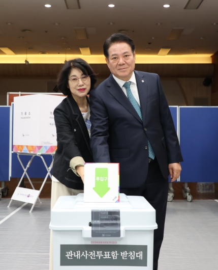 최 시장은 이날 오전 11시 동안구청 5층 회의실에 마련된 달안동 사전투표소에서 소중한 한 표를 행사했다.