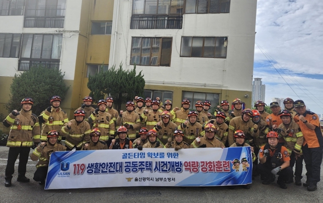 [무한뉴스=최진수 기자] 울산 남부소방서는 9월 24일까지 중구 재개발지역 아파트 단지에서 화재 현장 골든타임 확보를 위한 `방화문 시건개방 구조훈련'을 실시하고 있다고 밝혔다.