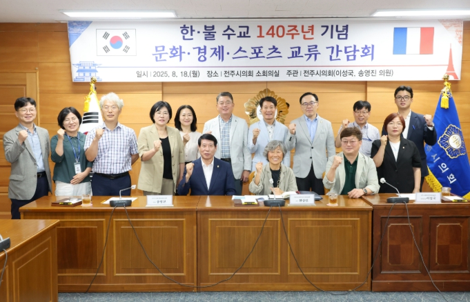 [무한뉴스=정민정 기자] 전주시의회는 18일 의회 5층 소회의실에서 한·불 수교 140주년을 기념한 문화·경제·스포츠 교류 간담회를 열고 협력 방안을 모색했다.