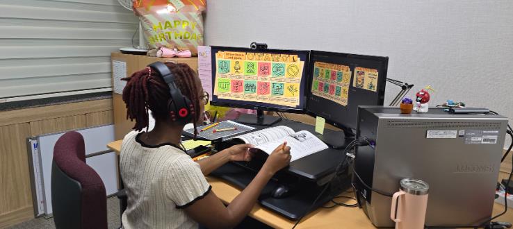 | ▲ 창의융합교육원, ‘Summer English Book Club’ 운영 Tumelo 교사가 학생들에게 화상수업을 진행하고 있다(창융원). |