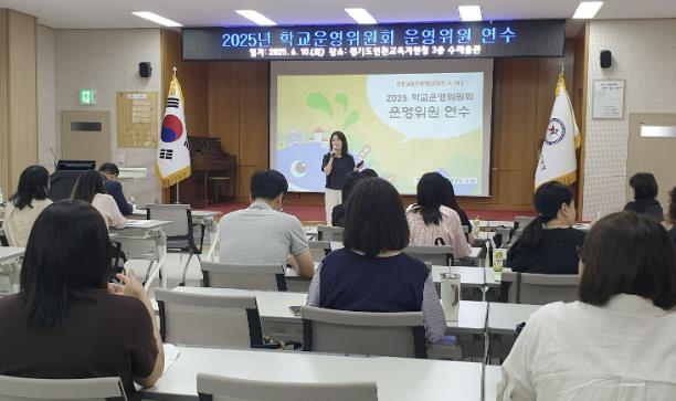 이날 연수의 주요 강의는‘학교운영위원회의 역할 및 이해’라는 주제로, 실무 중심의 구체적인 사례를 바탕으로 강의를 진행했다. 아울러 경기도교육청 활성화 T/F위원이 연수 모니터링단으로 참여하여 다양한 현장의 의견을 나누는 기회가 됐다.