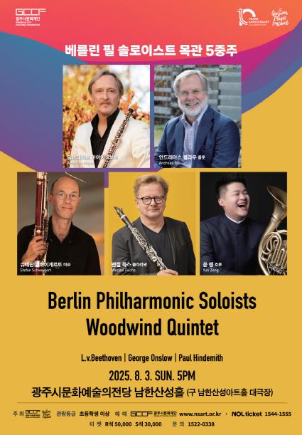 [무한뉴스=정승훈 기자] (재)광주시문화재단은 오는 8월 3일 오후 5시, 광주시문화예술의전당 남한산성홀에서 세계적인 클래식 연주자들로 구성된 ‘베를린 필 솔로이스트 목관 5중주’ 공연을 개최한다.