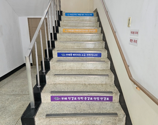 [무한뉴스=최진수 기자] 칠곡군은 청렴문화 확산 및 청렴의지 표출을 위해 일상 속 청렴의식을 고취할 수 있는 근무환경 조성을 위하여 읍면사무소 청사 계단에 청렴 문구 표찰을 설치했다.