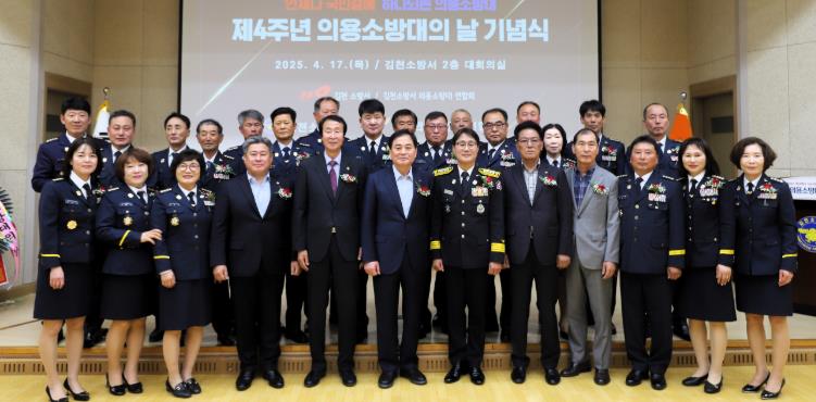 안영호 김천소방서장은 “올해 4주년을 맞이한 의용소방대의 날을 진심으로 축하드린다”며 “각종 재난 현장의 최일선에서 봉사활동에 헌신하고 계시는 의용소방대원들에게 존경과 격려의 박수를 보낸다”고 전했다.