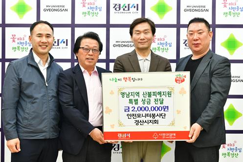 ▲ 안전모니터봉사단 경산시지회 영남지역 산불피해 지원 성금 200만원 기탁 |